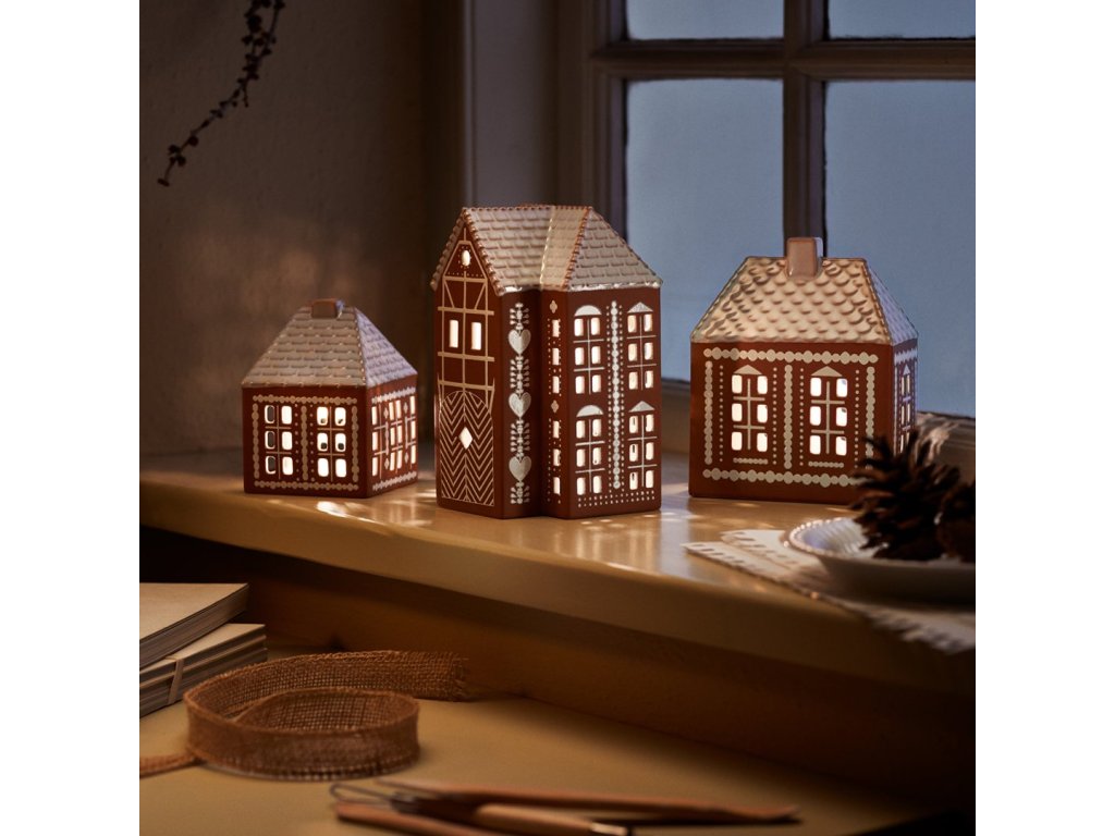 Suport pentru lumânări GINGERBREAD LIGHTHOUSE 17 cm, maro, gresie, Kähler