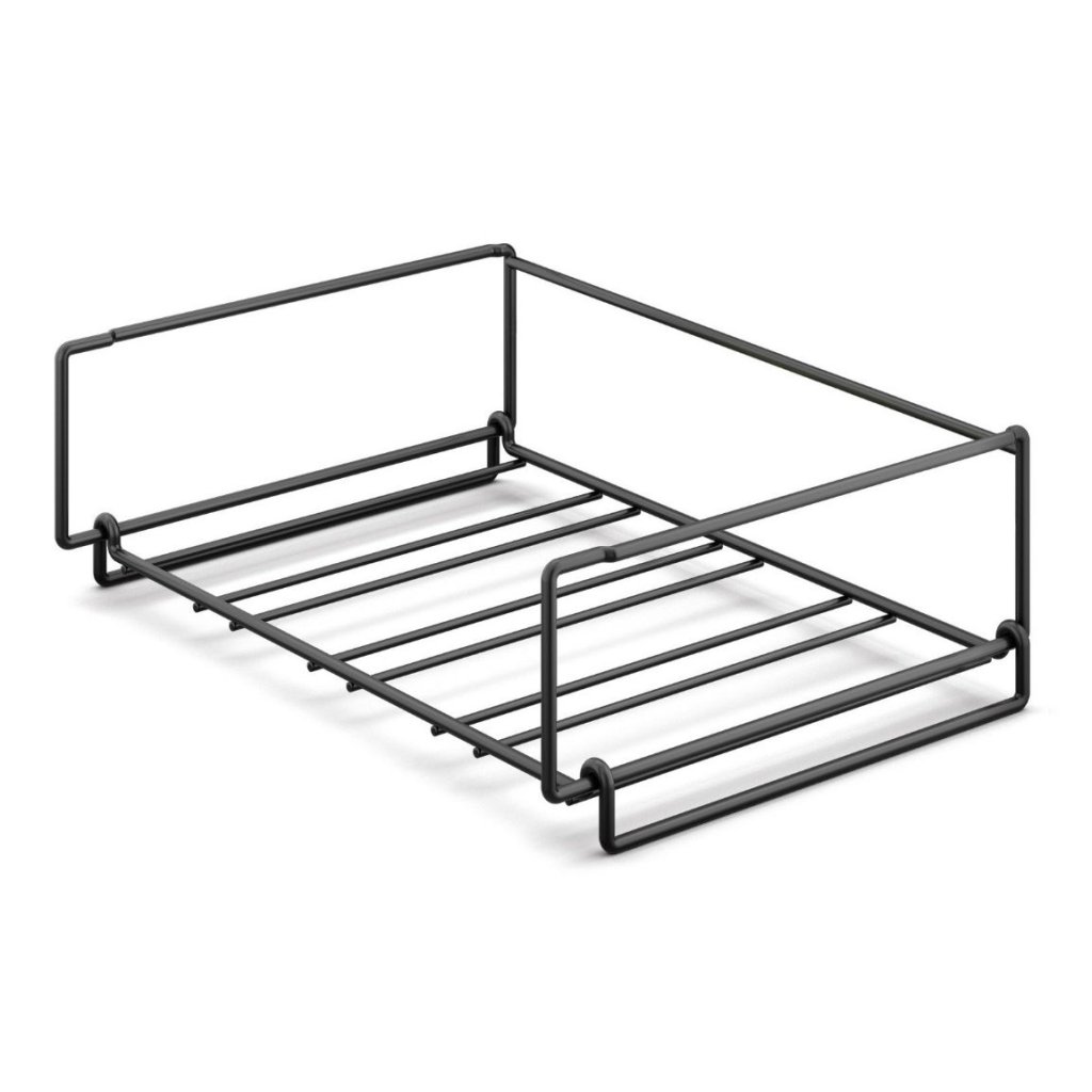 - forma compactă a raftului permite utilizarea acestuia pe rafturi, pe un blat sau în dulapuri de depozitare