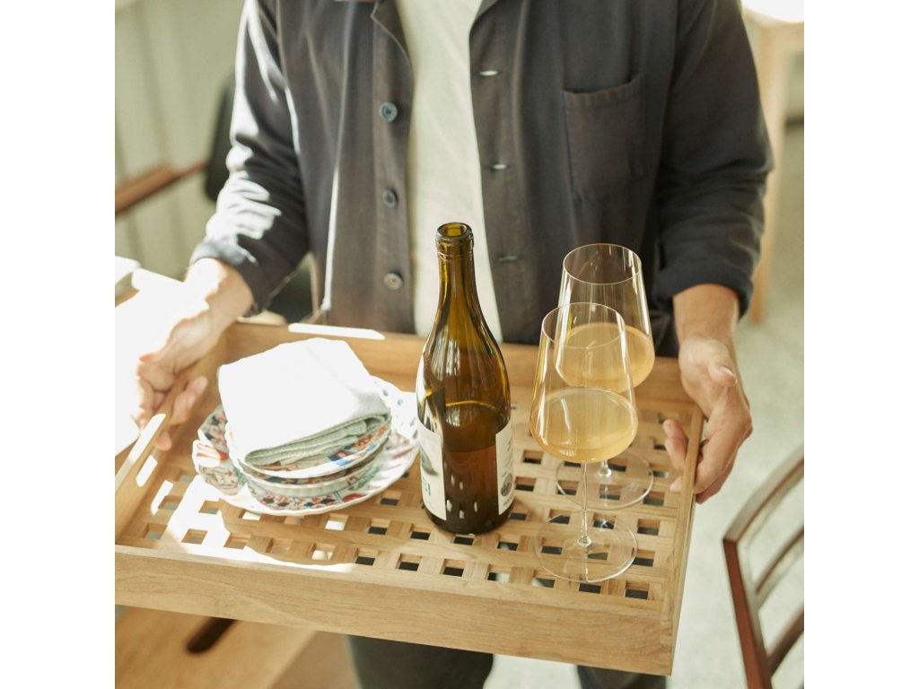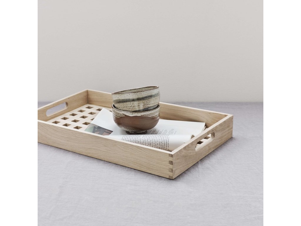 - un tavă de servire cu o formă distinctă și o bază cu grilă care combină funcționalitatea cu estetica
