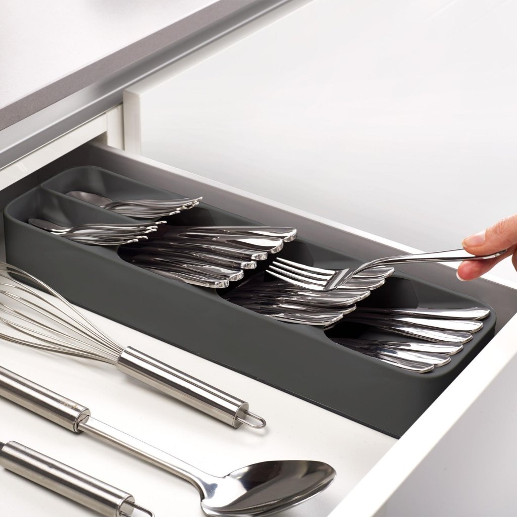 - Tavă pentru tacâmuri în sertar Joseph Joseph DUO este o soluție compactă pentru o organizare clară și economică a lingurilor, furculițelor și cuțitelor în fiecare bucătărie modernă.
