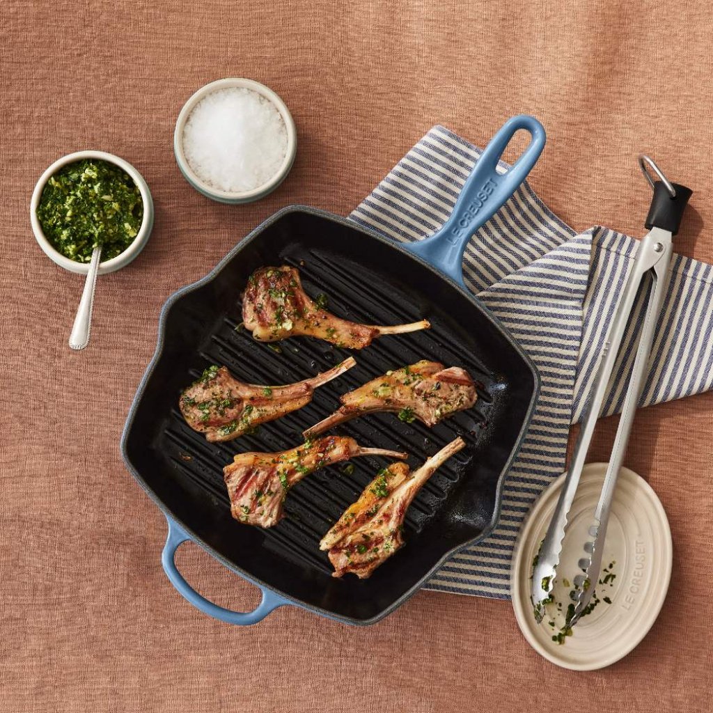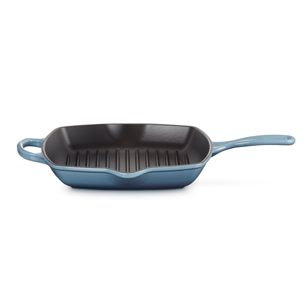 - Tapița pătrată fontă tigaie pentru gratar Le Creuset în culoarea CHAMBRAY este ideală pentru gătirea rapidă a cărnii, peștelui și legumelor, păstrându-le aroma și suculența.