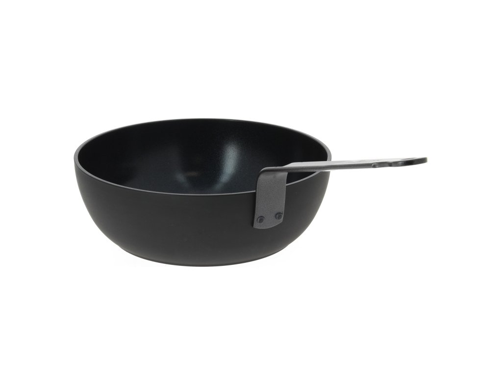 - forma rotunjită a tigăii favorizează amestecarea uniformă și distribuirea ușoară a sosurilor și sucurilor în timpul fierberii și fripturii