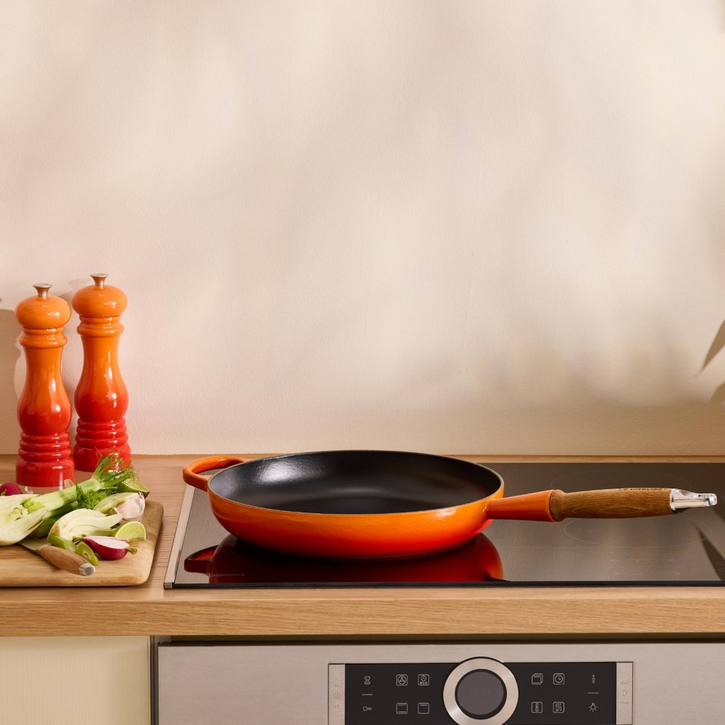- Nuanța atemporală FLAME conferă tigăii un aspect distinctiv și elegant, care se potrivește perfect cu alte produse Le Creuset.