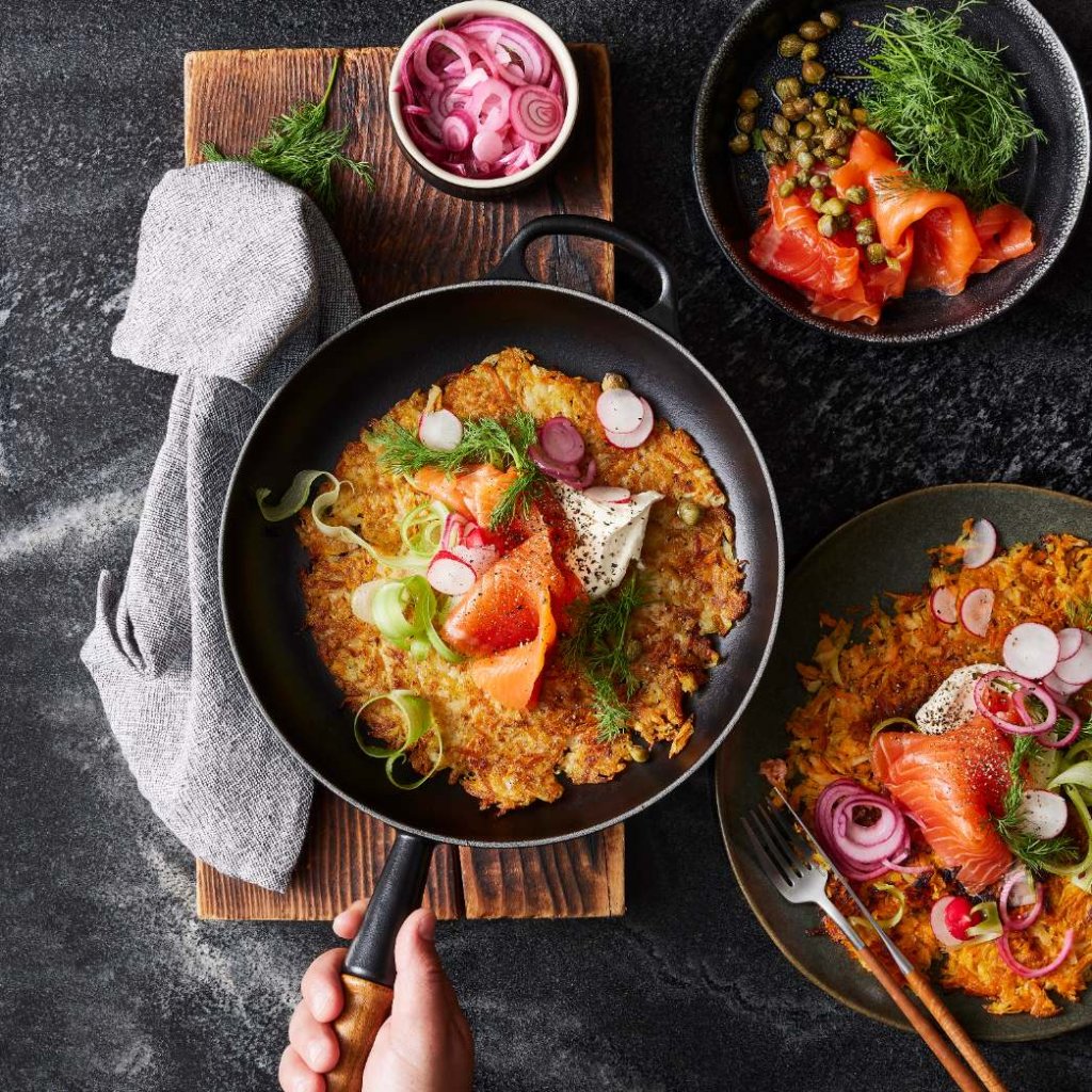 - Suprafața tigăii este ușor de întreținut - curățarea numai cu apă este recomandată pentru a permite patinei să se dezvolte corespunzător și să promoveze proprietăți excelente de gătit.