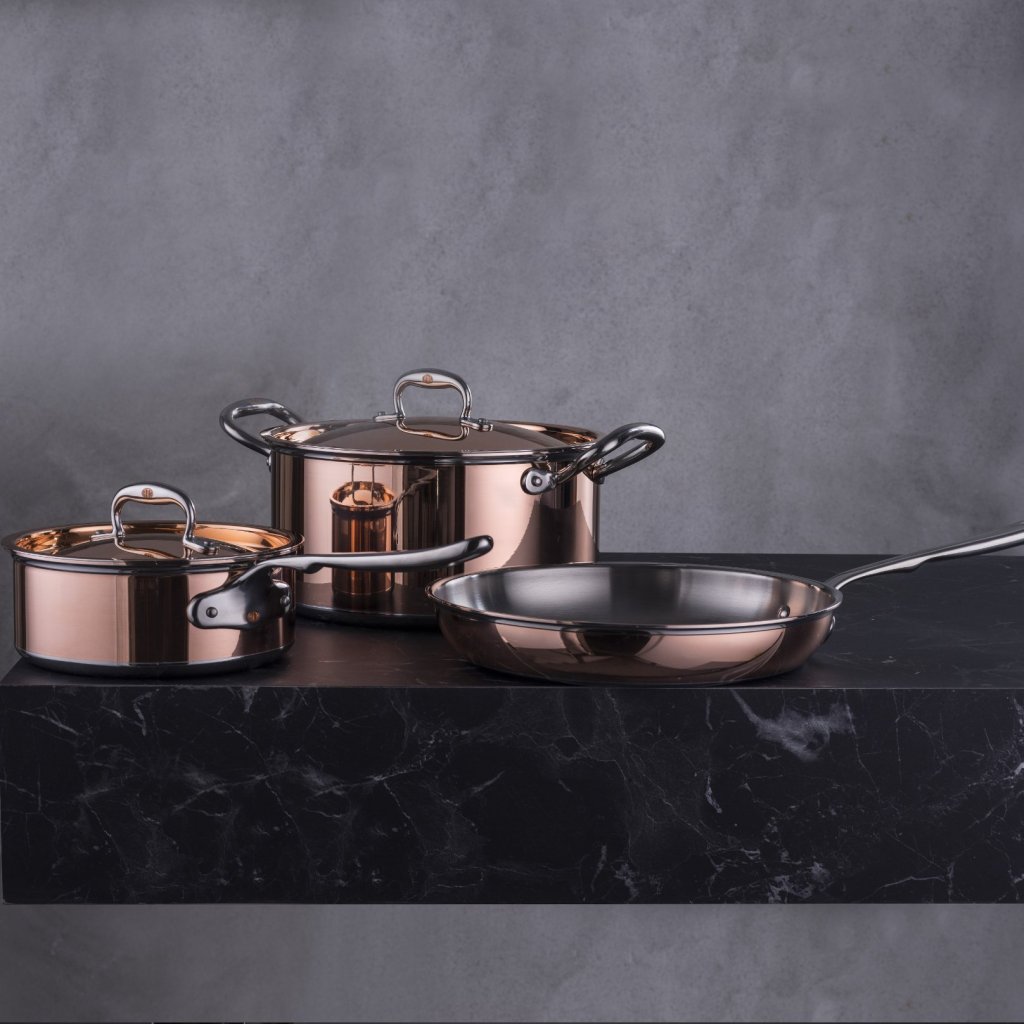 - cuprul este un material de neegalat pentru gătit - oferă distribuție rapidă a căldurii și conductivitate termică uniformă pentru rezultate perfecte