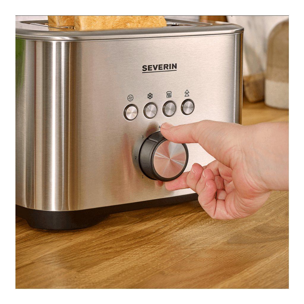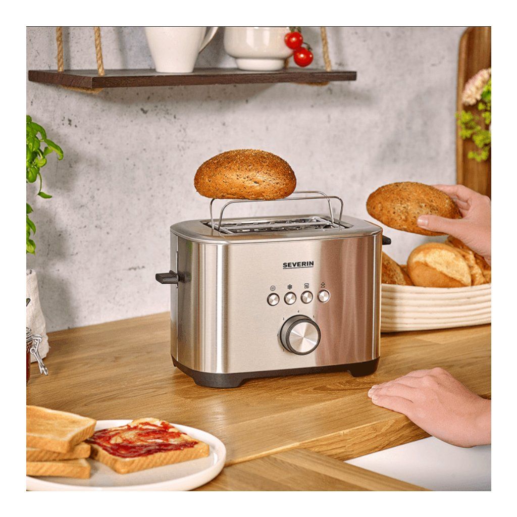 - două fante mari cu dispozitiv de prăjire integrat, ideal pentru 2 pâini prăjite XXL, pâine feliată, rulouri și covrigi