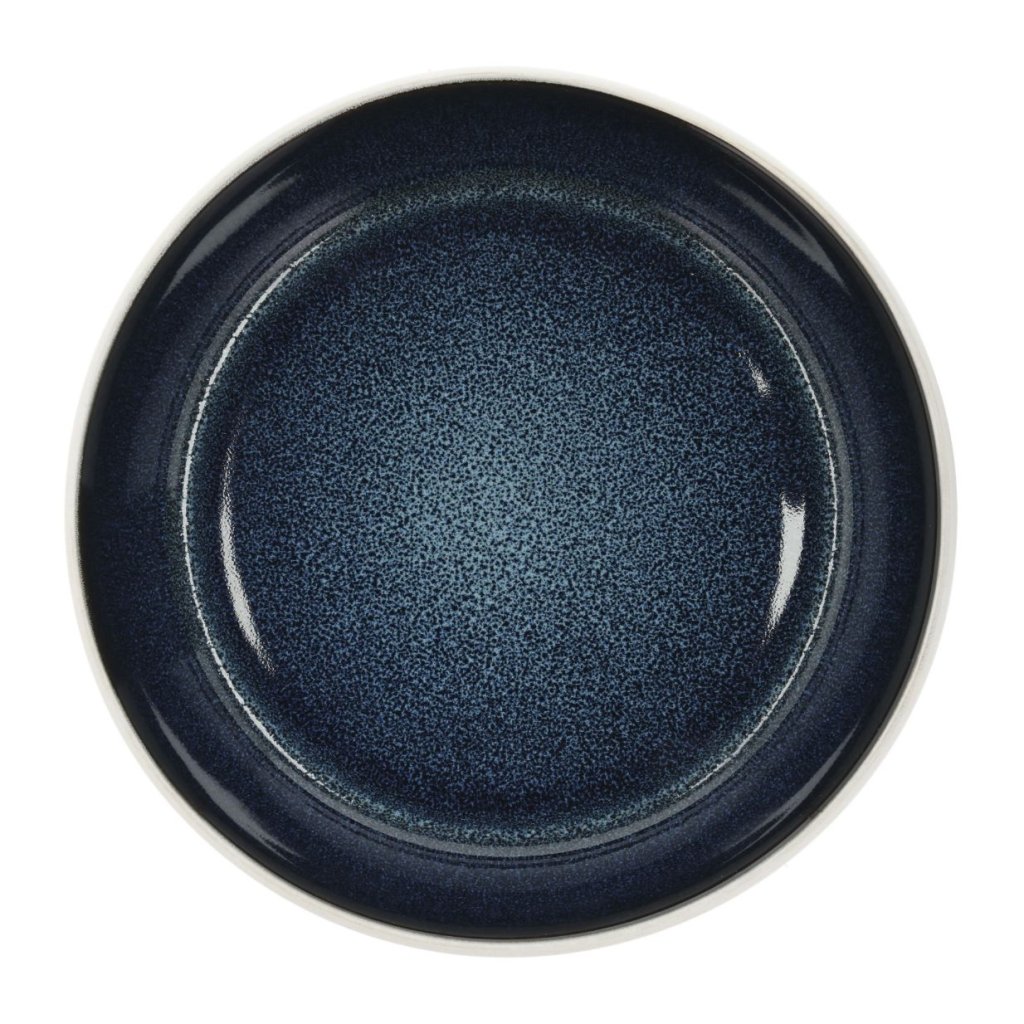 - Glazura lucioasă într-o nuanță închisă la culoare albastru evocă calm și profunzime și contrastează perfect cu culorile mâncării servite.