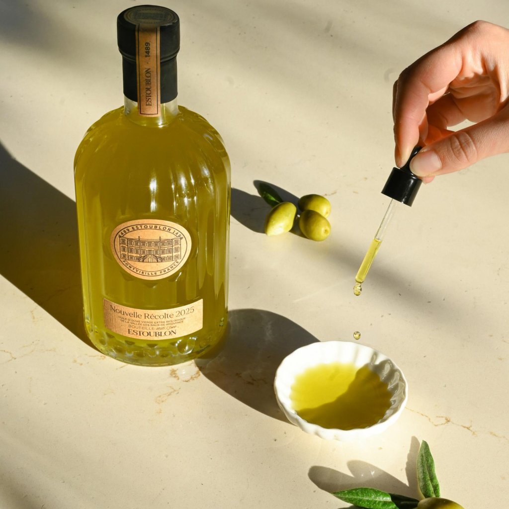 - ulei de măsline extra virgin NOU HARVEST de la Château d'Estoublon prezintă primul fruct al recoltei de măsline 2024