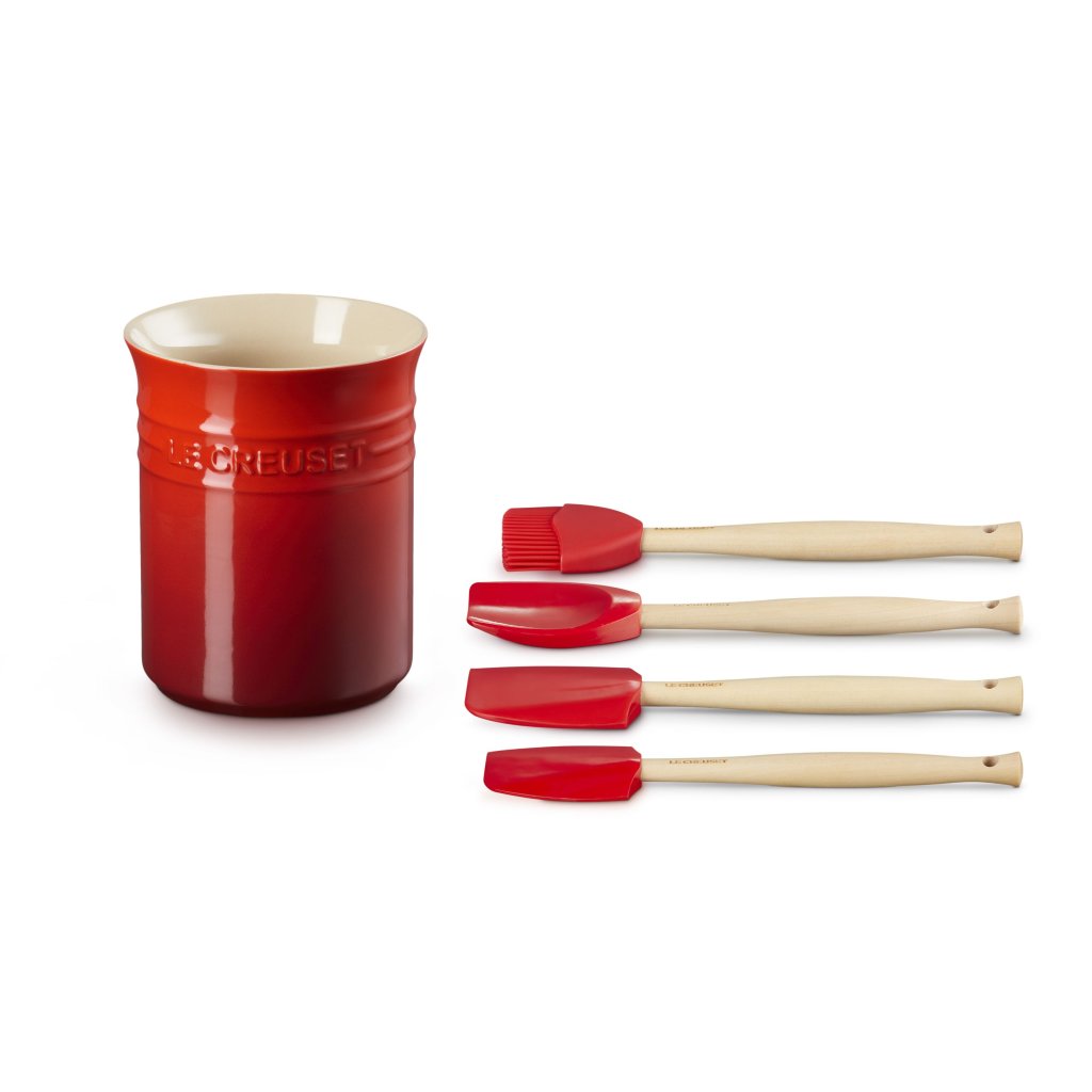 - Setul de ustensile de bucătărie Le Creuset în nuanța CERISE este un accesoriu practic și elegant pentru oricine iubește gătitul și organizarea perfectă a bucătăriei.
