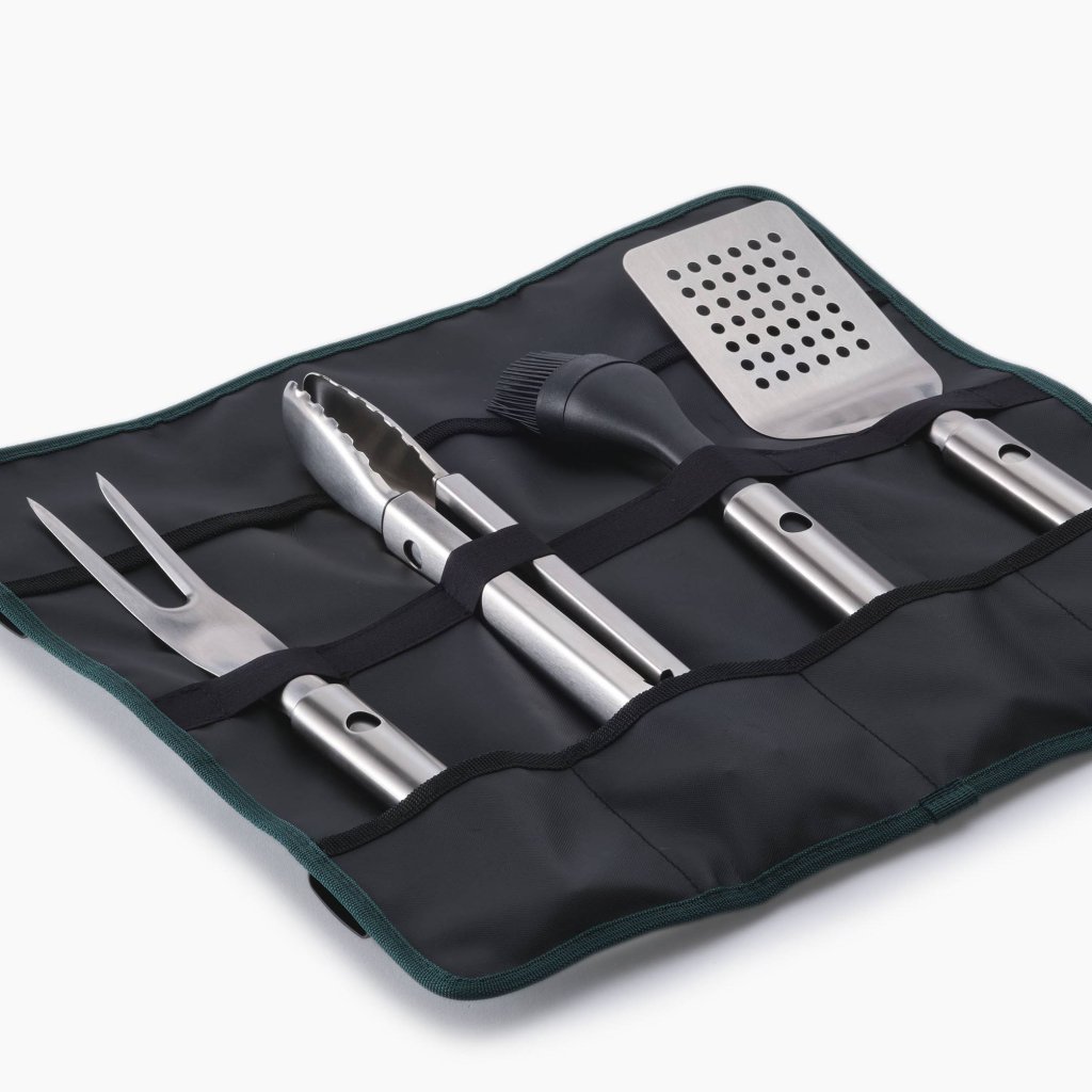- Setul de grătar Joseph Joseph GRILLOUT include patru ustensile oțel inoxidabil și o geantă practică pentru prepararea completă și convenabilă a alimentelor în timpul grătarului în aer liber.