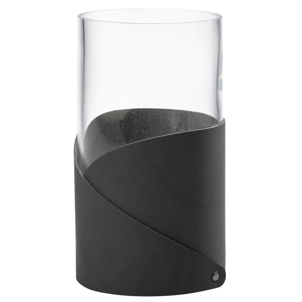 Vază FOLD NUPO 15 cm, antracit, piele / sticlă, LIND DNA