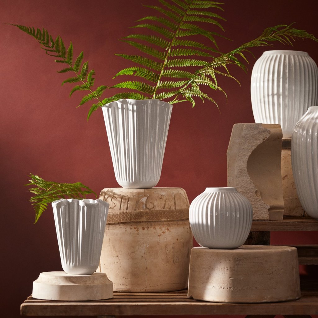 - porțelan vază HAMMERSHOI UNFOLD în alb cu o înălțime de 16,5 cm este un omagiu adus celei de-a zecea aniversări a colecției iconice HAMMERSHOI