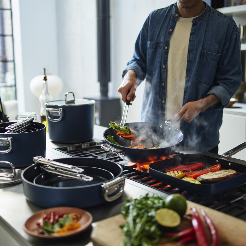 - Designul elegant Midnight Albastru conferă tigăii un aspect modern și subliniază caracterul premium al întregii serii SPACE.