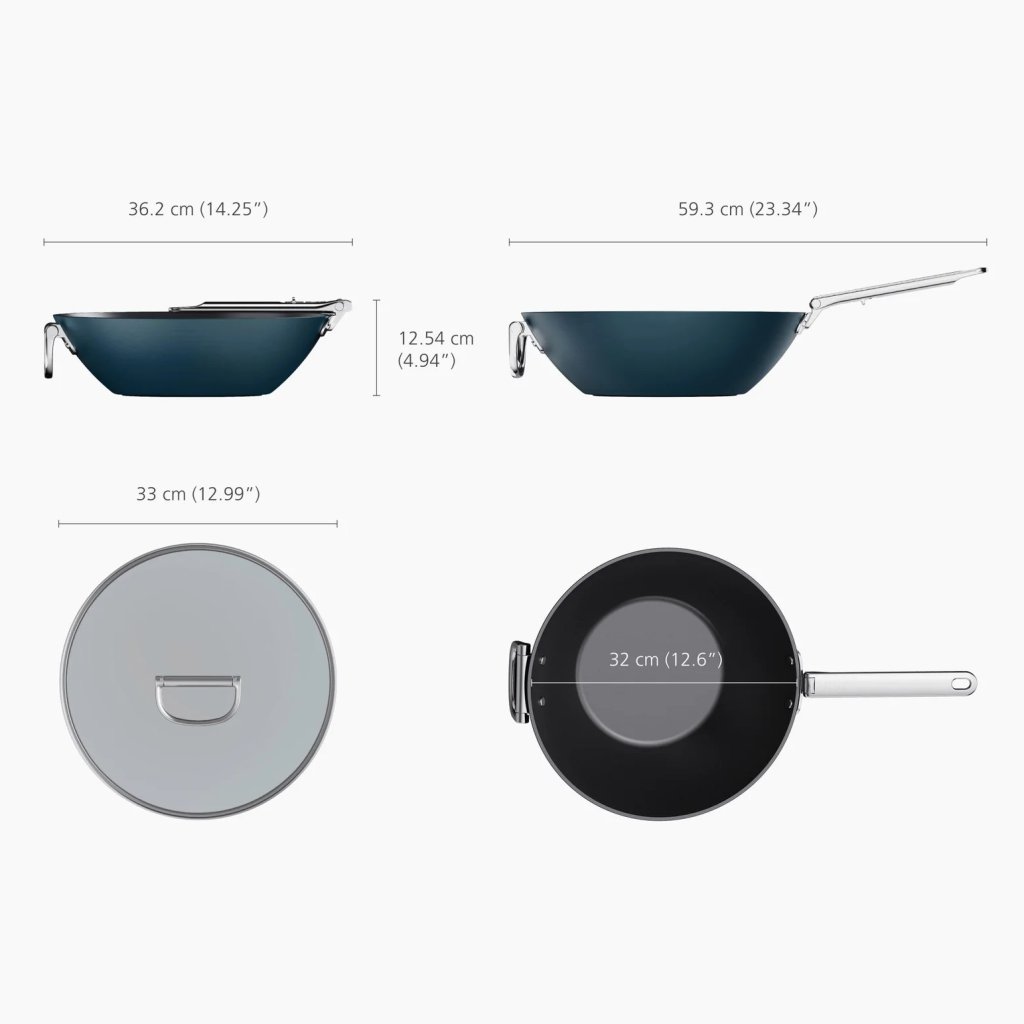 - Diametrul de 32 cm oferă spațiu amplu pentru prepararea unor porții mai mari de amestecuri stir-fry, orez prăjit, tăiței sau preparate din legume.