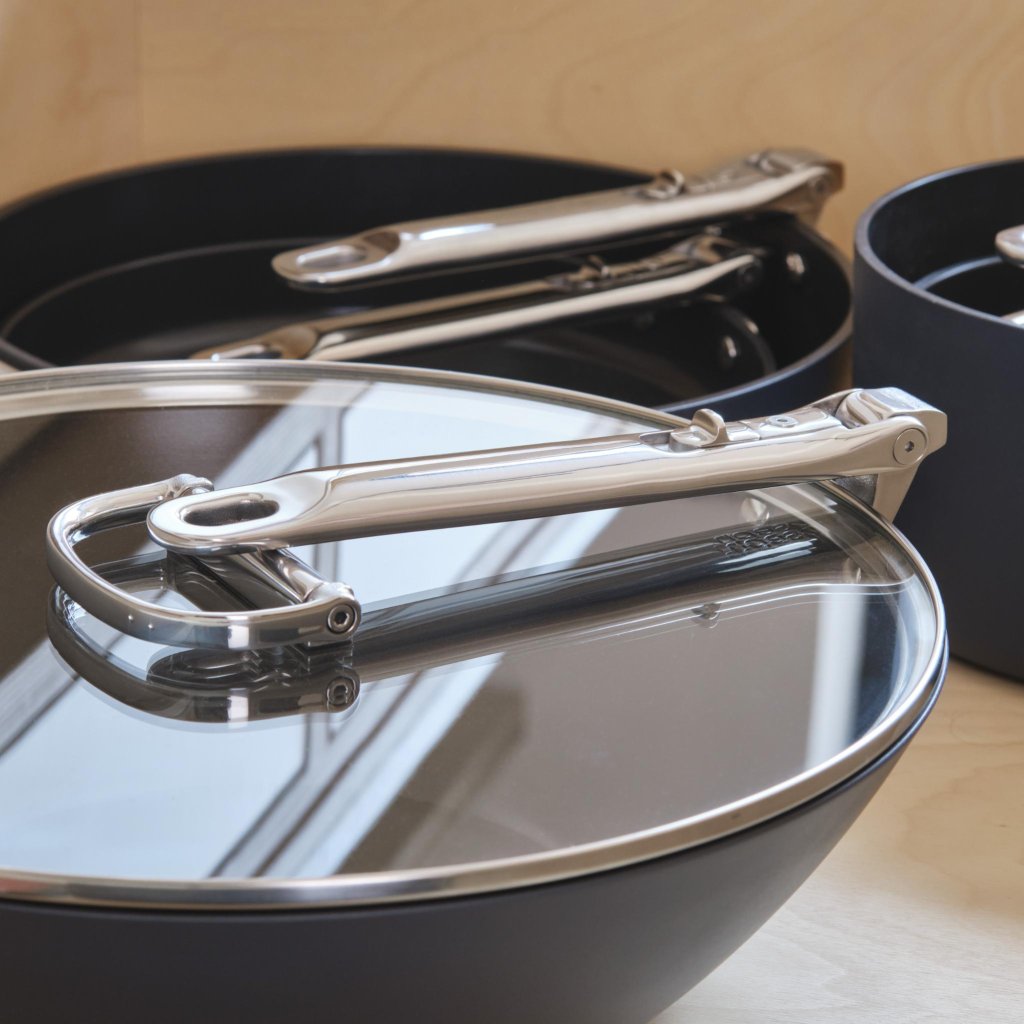 - Include o margine călită sticlă capac pentru oală cu margine oțel inoxidabil și un mâner pliabil pentru depozitare compactă ușoară